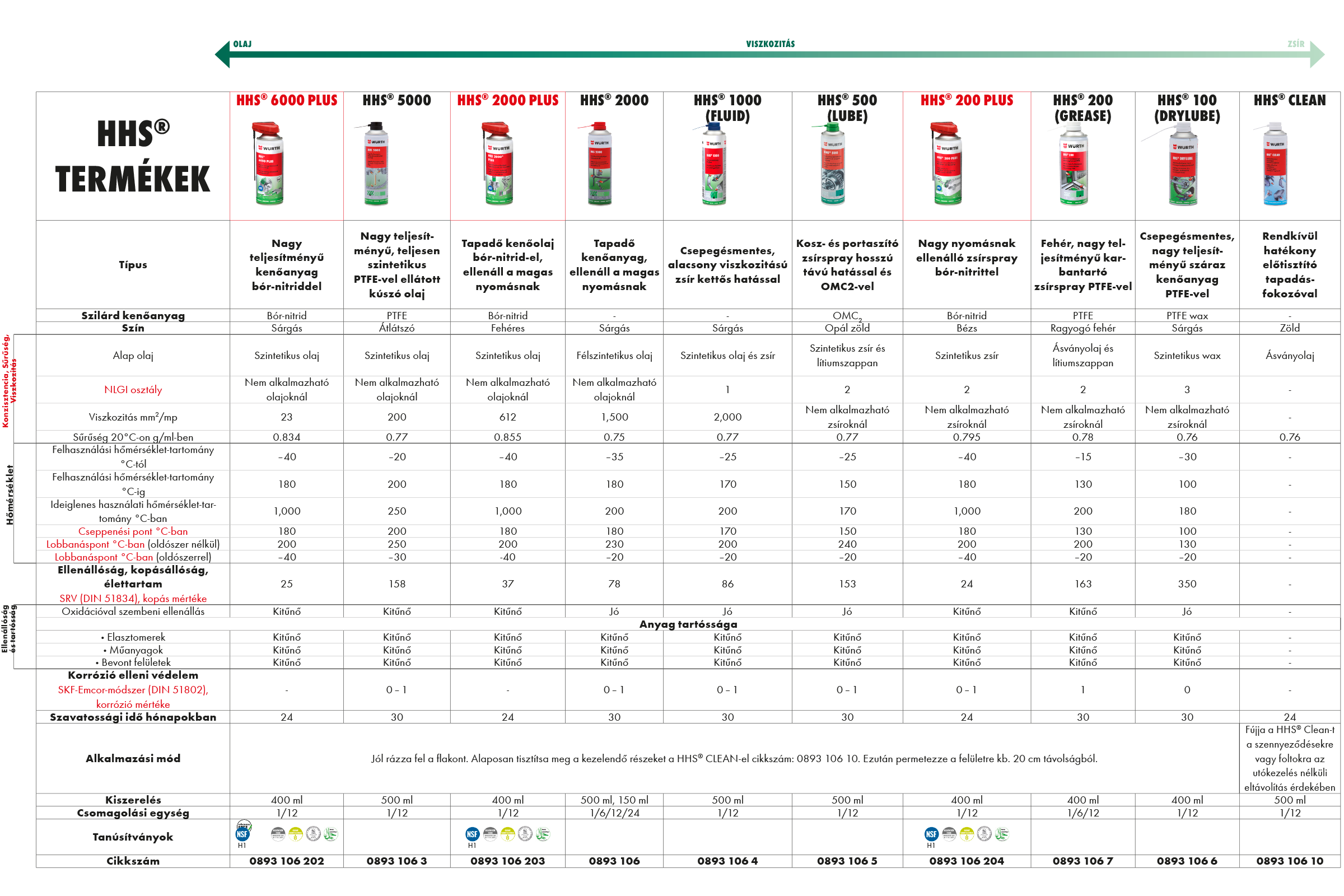 Hogyan lehet könnyen meghatározni, hogy a különböző felhasználási területekre milyen termékek alkalmasak? Tapadó-kenőanyag mátrixunk hasznos útmutató, amely segítséget nyújt Önnek a munkafolyamatához megfelelő kenőanyag kiválasztásában. A következő oldalakon a mátrix lehetővé teszi, hogy összehasonlítsa az alkalmazásspecifikus követelményeket a HHS® termékeink erősségeivel és tulajdonságaival.