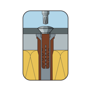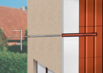 Könnyű terhelések szigetelt homlokzatokra történő rögzítéséhez. A nejlondübel csavarszárba való beépítése innovatív konstrukciót alkot